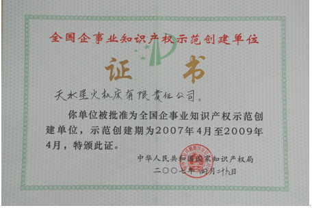 2007年,公司被國家知識產(chǎn)權(quán)局授予全國71家“企事業(yè)知識產(chǎn)權(quán)示范創(chuàng)建單位”之一