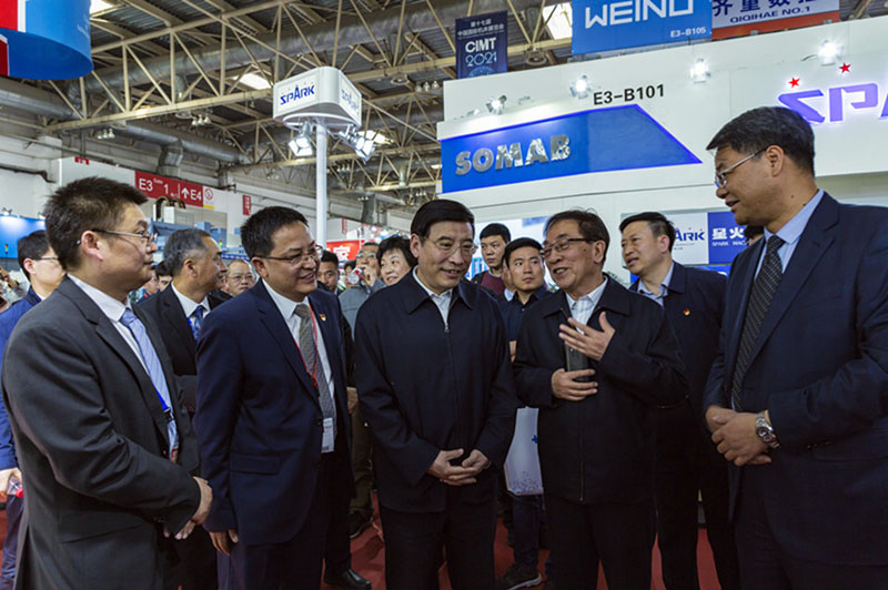 當(dāng)天下午,工業(yè)和信息化部部長(zhǎng)苗圩等領(lǐng)導(dǎo)蒞臨星火機(jī)床公司展臺(tái)參觀指導(dǎo)。集團(tuán)公司黨委書記、董事長(zhǎng)蔣保權(quán)向苗圩部長(zhǎng)介紹了企業(yè)生產(chǎn)經(jīng)營(yíng)和展品研發(fā)制造情況,并進(jìn)行了親切交流。苗圩對(duì)星火機(jī)床公司研發(fā)的MK84160x70x63大型全自動(dòng)數(shù)控軋輥磨床等展品給予充分肯定,并希望企業(yè)以創(chuàng)新促發(fā)展,以質(zhì)量促發(fā)展,加大轉(zhuǎn)型力度,走質(zhì)量效益型之路,為振興中國(guó)裝備制造業(yè)作出新貢獻(xiàn)。星火機(jī)床集團(tuán)公司總經(jīng)理劉勝,黨委副書記、副總經(jīng)理蔣俊,總經(jīng)理助理劉強(qiáng)及銷售、技術(shù)、管理等有關(guān)人員熱情接待。