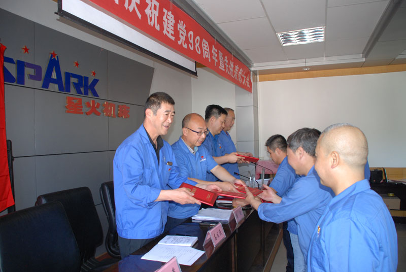 姚保忠說,今天我們在這里召開慶祝建黨98周年暨2018—2019年度先進(jìn)表彰大會,更是“不忘初心、牢記使命”主題教育活動(dòng)的啟動(dòng)和動(dòng)員大會,主要目的是以習(xí)近平新時(shí)代中國特色社會主義思想為指導(dǎo),進(jìn)一步動(dòng)員全體黨員投身到為星火脫困,重塑輝煌的事業(yè)當(dāng)中,振奮精神,開拓進(jìn)取,扎實(shí)工作,努力把生產(chǎn)經(jīng)營和黨建工作同促共進(jìn),高質(zhì)量發(fā)展黨建,為星火機(jī)床的持續(xù)發(fā)展努力奮斗。