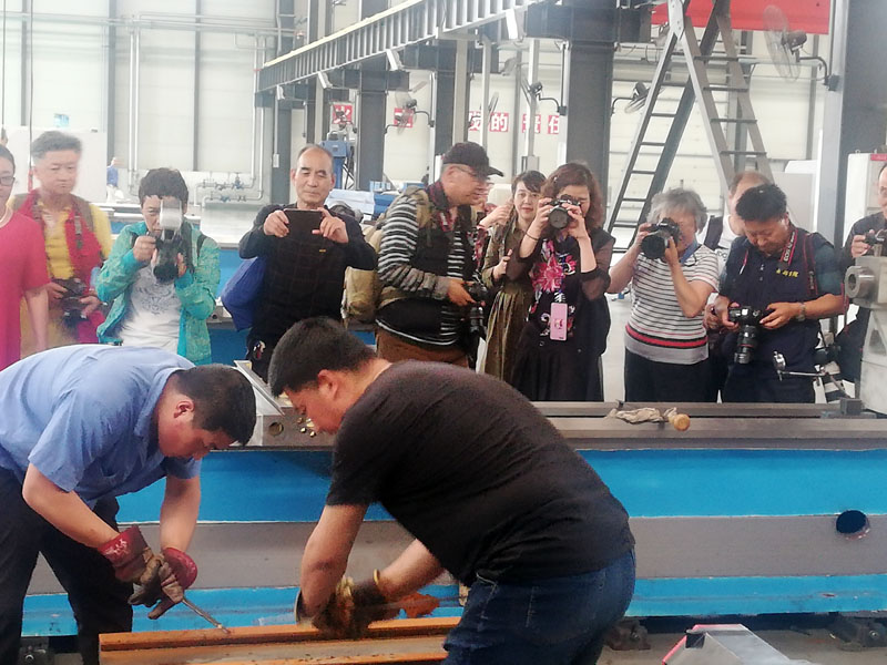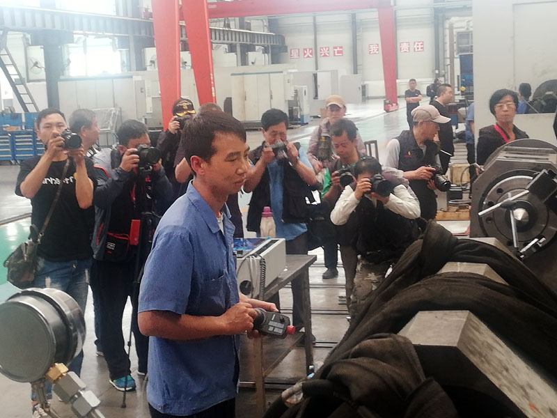 當(dāng)天下午,50多名攝影愛好者一進入星火機床公司工業(yè)園裝配現(xiàn)場,便四處散開,各自尋找自己的拍攝對象。長槍短炮一齊上陣,記錄他們認為有價值的瞬間,攝影愛好者喜歡以藝術(shù)攝影的視角觀察日常工作生活,特別喜歡通過圓孔、圓洞等表現(xiàn)拍攝對象。在數(shù)控精密分廠現(xiàn)場,他們?yōu)榱送ㄟ^管子車主軸孔拍攝,幾十人排隊等候,現(xiàn)場一名員工為他們做了近30分鐘的“模特”,配合他們工作。同時,有許多攝影愛好甚至通過龍門吊的吊鉤、零件吊環(huán)進行拍攝,力求以獨特的視角,反映現(xiàn)實生活、反映星火風(fēng)采。