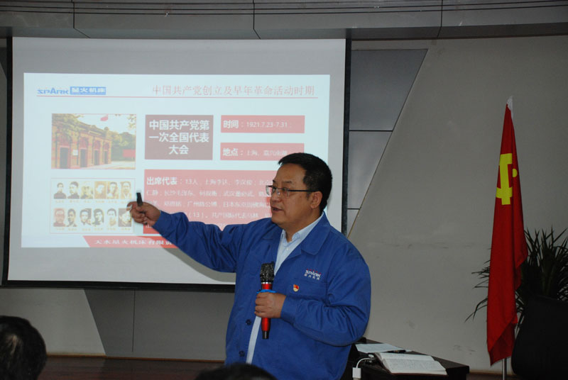 黨委書記、星火機(jī)床集團(tuán)公司董事長(zhǎng)蔣保權(quán)為與會(huì)人員作了專題黨課輔導(dǎo)。蔣保權(quán)從人類歷史發(fā)展進(jìn)步、中國共產(chǎn)黨誕生前的歷史背景、中國共產(chǎn)黨發(fā)展壯大的歷史,以及各個(gè)時(shí)期黨經(jīng)受的考驗(yàn)和歷史轉(zhuǎn)折關(guān)頭領(lǐng)導(dǎo)全國各族人民不斷堅(jiān)定信仰、明確目標(biāo),從勝利走向勝利的光輝歷程。蔣保權(quán)指出,每個(gè)黨員都要了解黨的光輝歷史,提高修養(yǎng),嚴(yán)格用黨員標(biāo)準(zhǔn)規(guī)范自己言行,發(fā)揮好模范帶頭作用,堅(jiān)信只有共產(chǎn)黨才能救中國,只有共產(chǎn)黨才能領(lǐng)導(dǎo)中國革命從勝利走向勝利,最終實(shí)現(xiàn)為中國人民謀幸福,為中華民族謀復(fù)興的中國夢(mèng)。