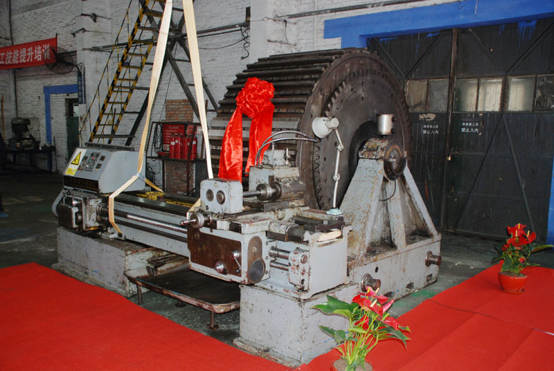 4月14日上午,星火機(jī)床機(jī)械制造公司精密大修車間氣氛隆重而熱烈,星火機(jī)床公司工業(yè)遺產(chǎn)老舊設(shè)備捐贈(zèng)儀式在這里舉行。捐贈(zèng)現(xiàn)場(chǎng)的大紅地毯上, 星火機(jī)床公司1973年生產(chǎn)的產(chǎn)品TX-1001牙條車床身披鮮艷的紅花,象一位待嫁的“新娘”,等待她的“婆家”天水市工業(yè)博物館 “迎娶”回家。