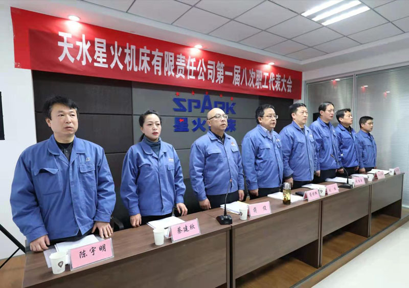 8點(diǎn)30分,主席團(tuán)成員在主席臺(tái)就座。蔣俊宣布天水星火機(jī)床有限責(zé)任公司第一屆八次職工代表大會(huì)在雄壯的國歌聲中開幕。