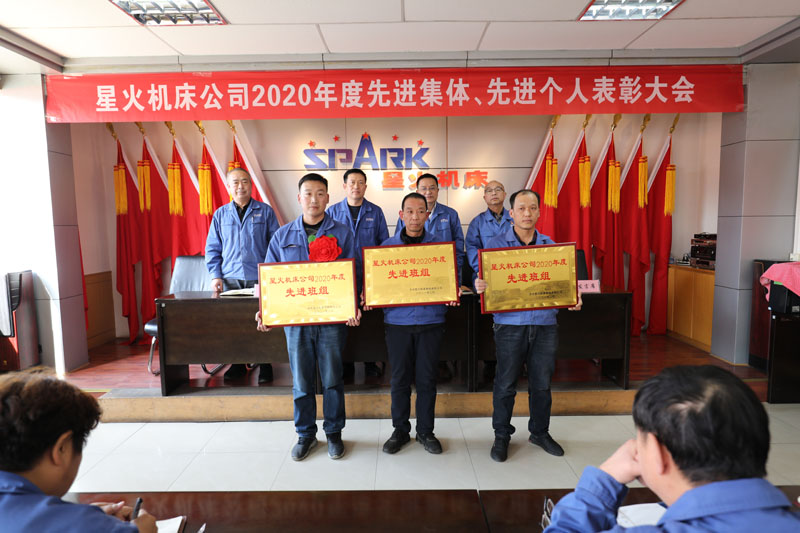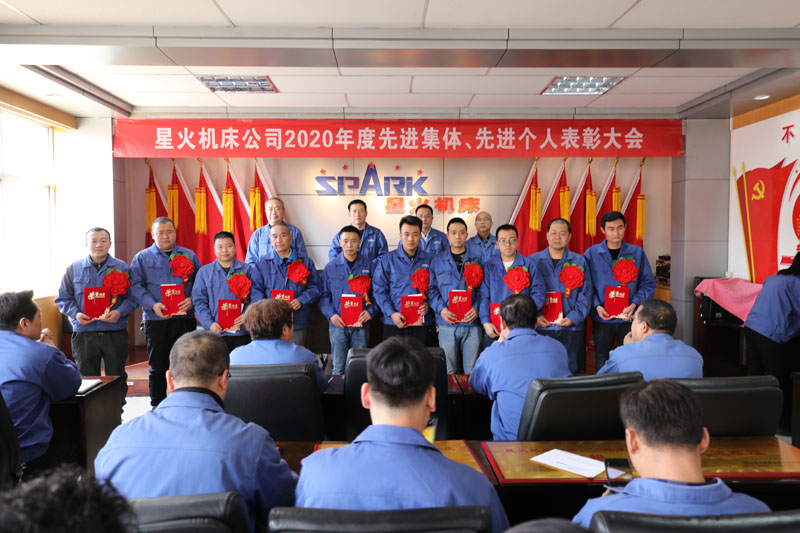 星火機(jī)床集團(tuán)公司黨委副書(shū)記、總經(jīng)理劉勝宣讀了《關(guān)于表彰2020年度先進(jìn)班組和先進(jìn)個(gè)人的決定》。鑄造公司大件一班、機(jī)械制造公司小件三班、機(jī)床裝備公司噴包班組榮獲先進(jìn)班組稱(chēng)號(hào);劉俊奇等10人榮獲先進(jìn)個(gè)人稱(chēng)號(hào),韓全貴等10人榮獲星火工匠稱(chēng)號(hào),潘毅榮獲銷(xiāo)售先進(jìn)個(gè)人稱(chēng)號(hào),張智昊榮獲售后服務(wù)先進(jìn)個(gè)人稱(chēng)號(hào),李成祥、張金滿(mǎn)榮獲設(shè)備保養(yǎng)標(biāo)兵稱(chēng)號(hào),馬存福榮獲優(yōu)秀黨務(wù)工作者稱(chēng)號(hào)。