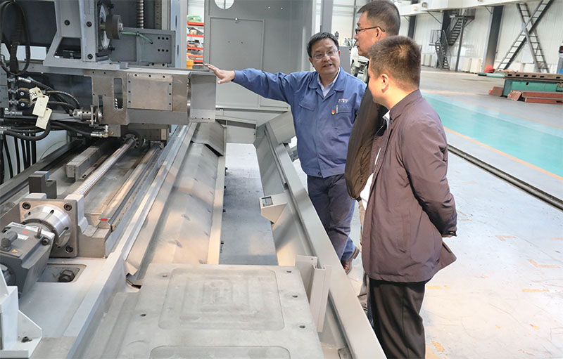 參觀過程中,蔣保權向楊擁軍一行詳細介紹了星火機床公司各類產(chǎn)品,尤其是大、重型產(chǎn)品以及進口設備的使用情況。楊擁軍一行參觀了企業(yè)展廳后,前往公司本部進行座談交流。