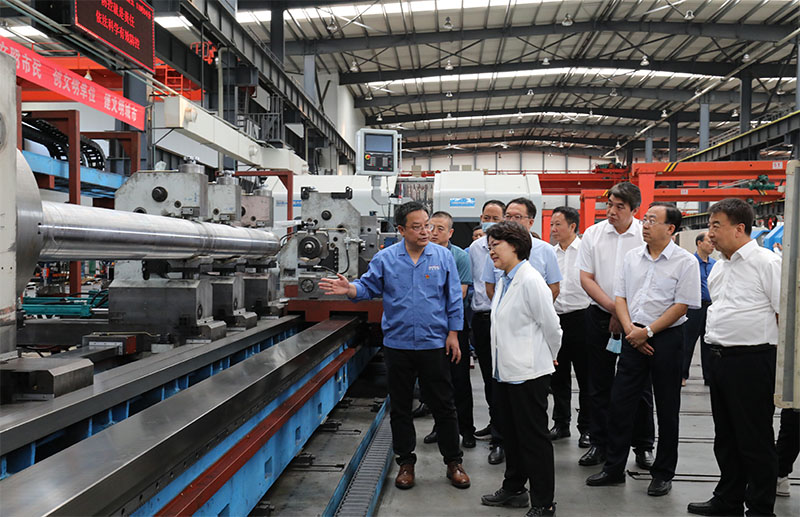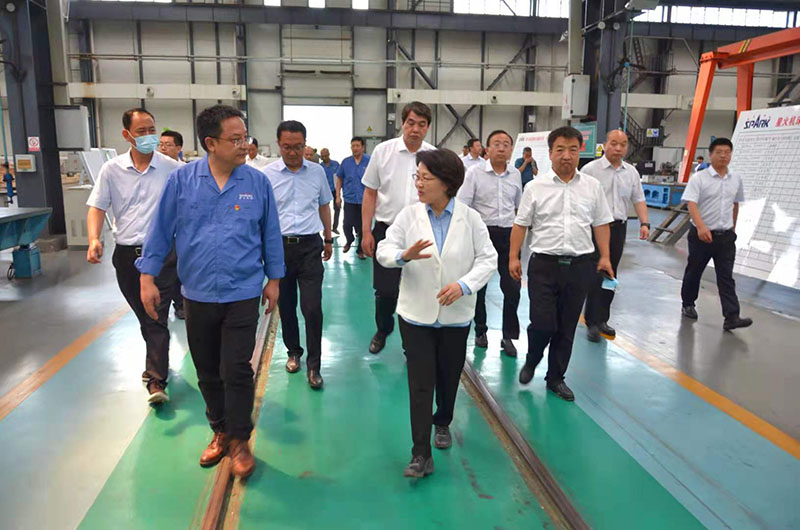張永霞書記一行先后深入星火機床公司工業(yè)園裝配、加工生產(chǎn)現(xiàn)場和紅山公司生產(chǎn)現(xiàn)場,參觀了各種產(chǎn)品。調(diào)研中,星火機床集團公司黨委書記、董事長蔣保權(quán)向張永霞書記重點介紹了星火機床集團公司基本情況、生產(chǎn)經(jīng)營工作、產(chǎn)品市場占有率、行業(yè)地位,公司正在實施或即將實施的多軸聯(lián)動數(shù)控纏繞機床研發(fā)及產(chǎn)業(yè)化項目、核乏燃料儲運罐生產(chǎn)線研發(fā)及產(chǎn)業(yè)化項目,機床研發(fā)設(shè)計檢測及創(chuàng)新能力提升、公司“十四五規(guī)劃”、公司鑄造智能化綠色化升級改造、戰(zhàn)略重組青海青重機床和智能制造及產(chǎn)業(yè)化、船用特型零件專用加工設(shè)備研發(fā)、大型五軸車銑復合加工中心研發(fā)等項目進展和預期效益,以及目前存在的困難和遇到的問題。
