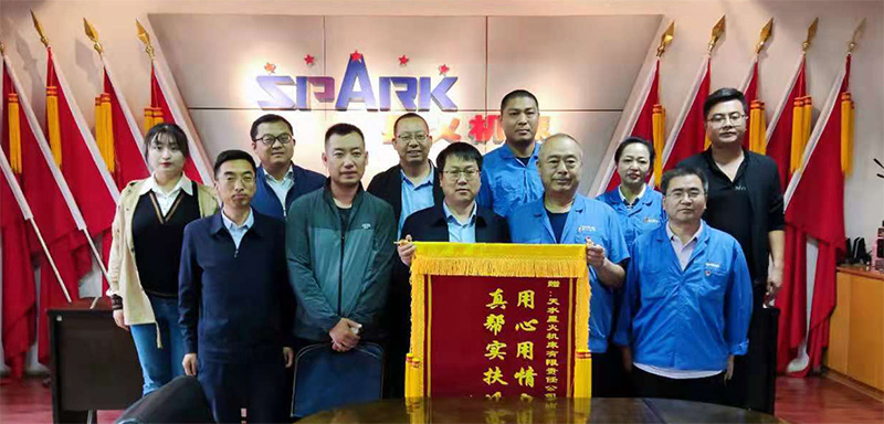 星火機(jī)床集團(tuán)公司副總經(jīng)理、星火公司總經(jīng)理趙錦銘代表企業(yè)向張龍一行專程前來走訪表示感謝,并介紹了公司希望通過招收幫扶村青年來公司就業(yè),幫助貧困人口穩(wěn)定脫貧的想法,以及目前已經(jīng)實施的通過在當(dāng)?shù)剞k廠幫助清水縣貧困群眾脫貧的效果。