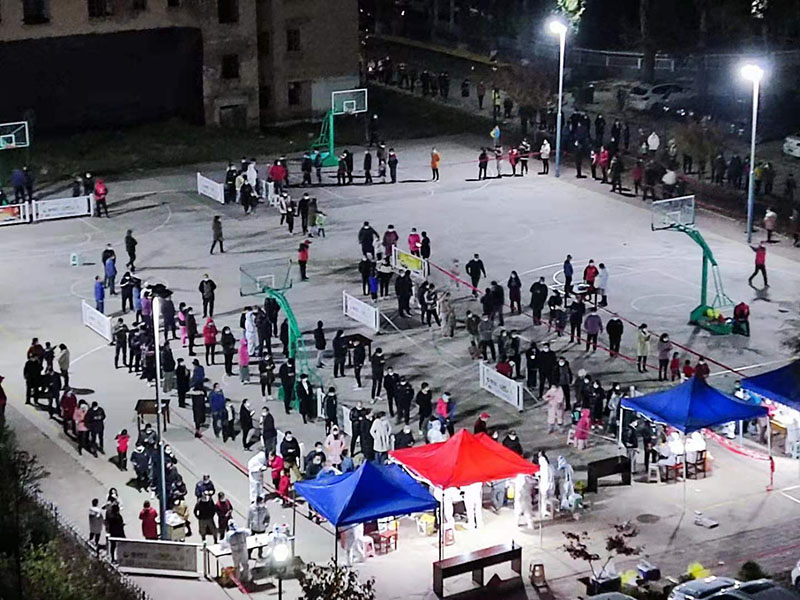 附件公司黨員職工組成抗疫突擊隊(duì),為“黃碼”人員進(jìn)行核酸檢測(cè)清掃環(huán)境、搭帳篷、擺桌子,保障照明,維持秩序。