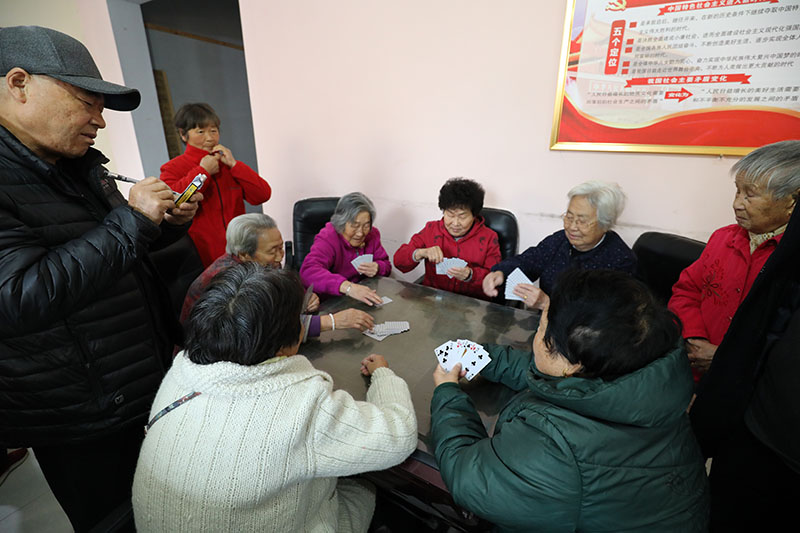 早上八點(diǎn)多,老職工陸續(xù)來(lái)到老年活動(dòng)中心。九點(diǎn)鐘,撲克比賽正式開(kāi)始。一時(shí)間,活動(dòng)室內(nèi)人頭攢動(dòng),笑聲不斷。參加活動(dòng)的老職工在工作人員的組織下,六人一組,自愿組合,打撲克爭(zhēng)上游,一局定勝負(fù)。比賽現(xiàn)場(chǎng),每張桌子前都擠滿了圍觀者。參賽者緊張有序,圍觀者興奮不已。有的是夫妻雙雙上陣,有的是兩代人共同參與。為使老職工過(guò)一個(gè)歡樂(lè)愉快的重陽(yáng)節(jié),公司在資金緊張的情況下,為老職工購(gòu)買了紀(jì)念品?;顒?dòng)結(jié)束后,參加活動(dòng)的老同志拿著紀(jì)念品,帶著滿臉笑容,高高興興的離去。