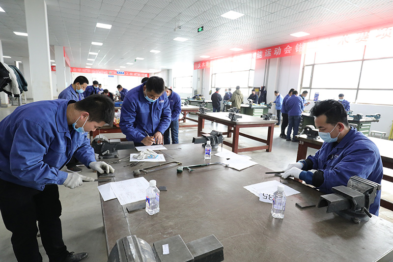 比賽期間,競(jìng)賽組委會(huì)領(lǐng)導(dǎo)親臨甘肅機(jī)電職業(yè)技術(shù)學(xué)院考點(diǎn)理論考試現(xiàn)場(chǎng)和實(shí)操現(xiàn)場(chǎng)查看,并要求各單位領(lǐng)隊(duì)認(rèn)真負(fù)責(zé),做好職工人身安全防護(hù)工作。為幫助參賽選手提高技能水平,促進(jìn)各企業(yè)職工間的技能交流,在機(jī)電學(xué)院舉行的實(shí)際操作比賽前,組委會(huì)增設(shè)了技能演示環(huán)節(jié),邀請(qǐng)歷年通過(guò)比賽涌現(xiàn)出的甘肅省技術(shù)標(biāo)兵、技術(shù)能手及相關(guān)企業(yè)技術(shù)工人進(jìn)行經(jīng)驗(yàn)介紹、技術(shù)交流和實(shí)際操作演示。星火機(jī)床公司高級(jí)技師康育紅、金華、劉耀輝受邀為參賽選手現(xiàn)場(chǎng)展示了車(chē)工技能和鉗工刮研技能,受到了參賽選手的一致好評(píng)和充分肯定。作為同一工種的技術(shù)工人,選手們還進(jìn)行了經(jīng)驗(yàn)交流、技術(shù)探討,現(xiàn)場(chǎng)熱鬧非凡。