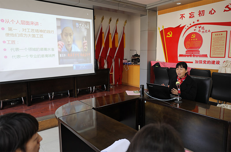 隨后,宣講組武兵主任對中國工匠文化傳統(tǒng)、大國工匠的內(nèi)涵、工匠精神的實(shí)質(zhì),以及工匠精神的基本特點(diǎn)、大國工匠在國家建設(shè)中的重要作用、黨和國家對工匠等高技能人才的重視,大國工匠、隴原典型人物的事跡作了系統(tǒng)講解,總結(jié)提煉了專注、創(chuàng)新、敬業(yè)、堅(jiān)守、嚴(yán)謹(jǐn)、精益求精、一絲不茍、追求卓越、力行正道等工匠精神的基本特點(diǎn)。希望廣大產(chǎn)業(yè)工人立足崗位,潛心鉆研,致力創(chuàng)新,向大國工匠學(xué)習(xí),向大國工匠看齊,做到大巧于心,大慧于行,為經(jīng)濟(jì)發(fā)展和國家建設(shè)做出自己的貢獻(xiàn)。