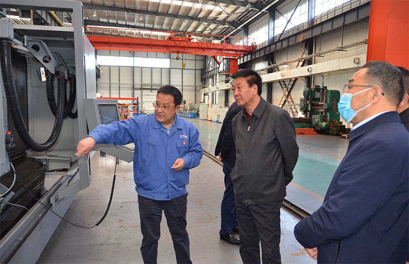 星火機床集團公司黨委書記、董事長蔣保權(quán),黨委副書記、副總經(jīng)理蔣俊分別向調(diào)研組匯報了生產(chǎn)經(jīng)營工作、目前市場形勢,陪同參觀了即將參展的新產(chǎn)品進(jìn)展。