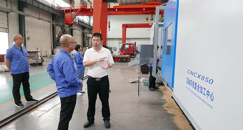 陳海龍一行參觀了公司研發(fā)生產(chǎn)的各類機(jī)床產(chǎn)品,認(rèn)真聽取了集團(tuán)公司黨委副書記、副總經(jīng)理蔣俊關(guān)于企業(yè)發(fā)展歷程、技術(shù)研發(fā)能力、生產(chǎn)經(jīng)營情況、市場前景、項(xiàng)目建設(shè)進(jìn)展及公司“十四五”發(fā)展規(guī)劃等情況介紹,詳細(xì)詢問了企業(yè)上半年生產(chǎn)經(jīng)營工作,特別是企業(yè)目前存在的主要困難和問題。