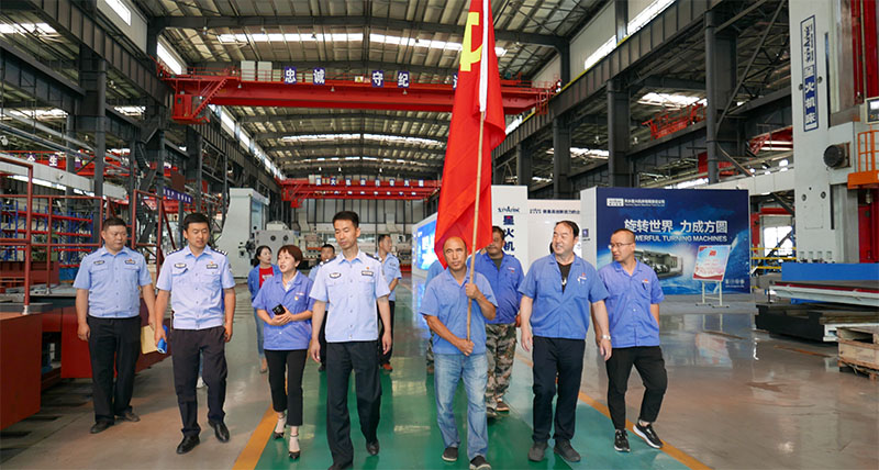 在黨旗的引領下,大家秩序井然的參觀了星火機床公司展廳和生產現(xiàn)場。星火機床公司黨群工作部部長蔡建欣向緱占彪一行詳細講解了企業(yè)的建廠歷史、產品研發(fā)、企業(yè)文化、公司“十四五”規(guī)劃及生產流程等內容。