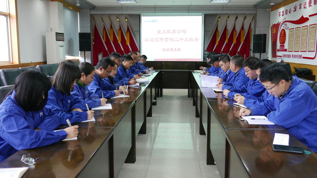 近期,星火機床公司掀起了學習黨的二十大精神的熱潮?;鶎痈鼽h支部結合生產經營實際,通過 “三會一課”、微信群、公眾號、廣播、網(wǎng)絡等各種形式認真學習黨的二十大報告,用實際行動踐行二十大精神。