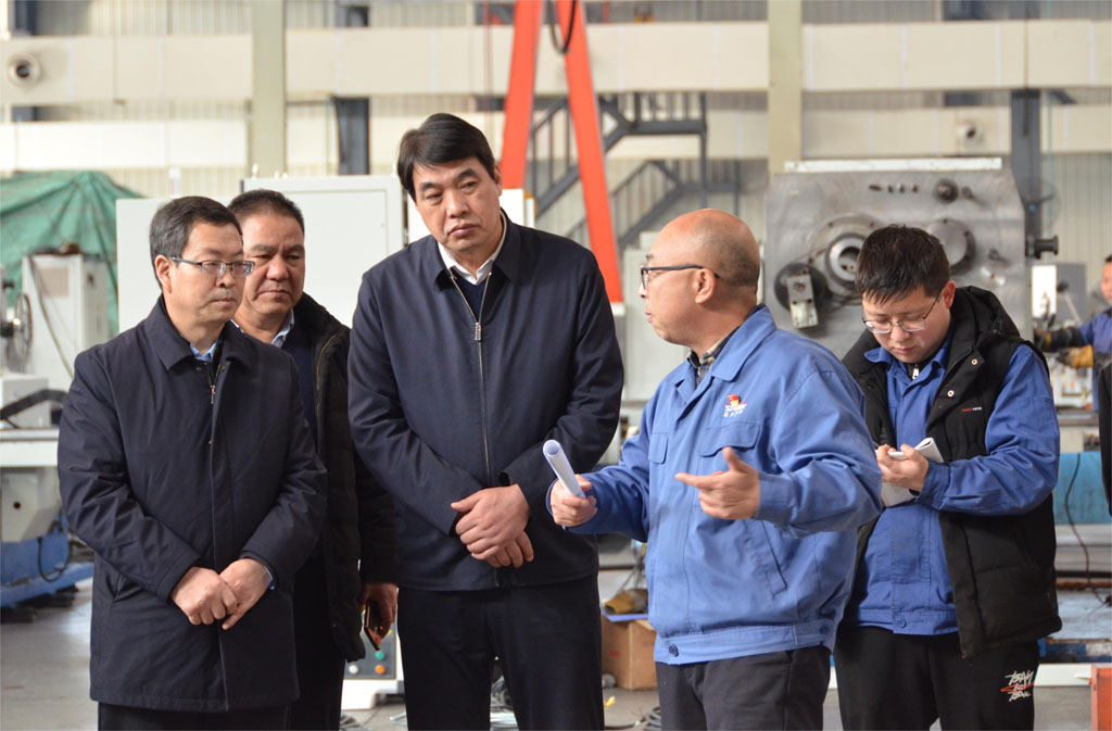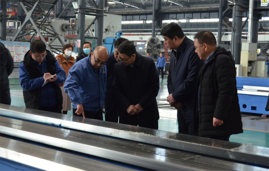 包俊宗一行在實(shí)地調(diào)研時(shí),不時(shí)駐足觀看公司特色產(chǎn)品,詳細(xì)了解了企業(yè)科技創(chuàng)新等情況。調(diào)研中,蔣俊向包俊宗一行重點(diǎn)介紹了公司自主研制的五軸聯(lián)動(dòng)數(shù)控機(jī)床、數(shù)控纏繞機(jī)床、專用機(jī)床等高端產(chǎn)品的科技創(chuàng)新和市場(chǎng)應(yīng)用情況。