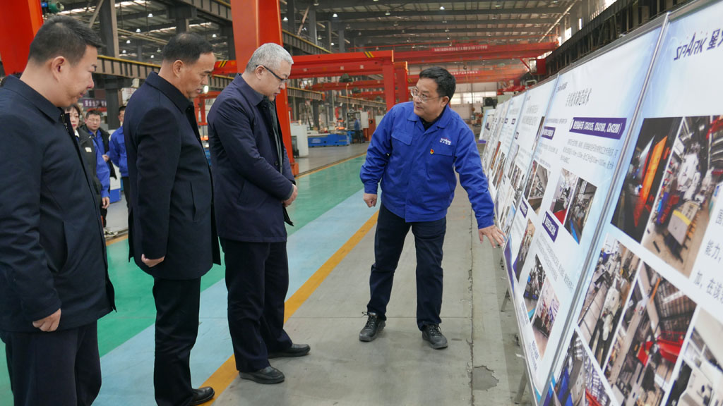 1月31日,甘肅省工業(yè)和信息化廳黨組書記、廳長盛云峰一行在天水市副市長胡志勇、市工信局局長陳海龍、經(jīng)開區(qū)管委會主任胡亞軍等人的陪同下,到星火機(jī)床公司調(diào)研產(chǎn)品研發(fā)、技術(shù)創(chuàng)新、人才培養(yǎng)等工作。