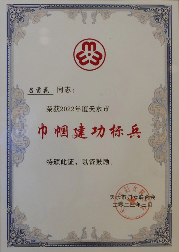 星火機(jī)床公司一線女職工呂菊花榮獲天水市“巾幗建功標(biāo)兵”榮譽(yù)稱號(hào),在3月8日天水市紀(jì)念“三八”國(guó)際勞動(dòng)?jì)D女節(jié)113周年暨“致敬了不起的她”表彰大會(huì)上受到表彰。