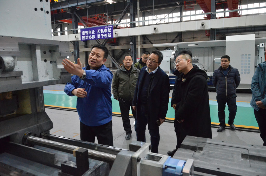 調(diào)研中,劉勝通向調(diào)研組匯報了公司作為國家專精特新“小巨人”在適應(yīng)國家發(fā)展戰(zhàn)略、強工業(yè)強科技、服務(wù)地方經(jīng)濟建設(shè)、促進技術(shù)創(chuàng)新方面發(fā)揮的作用,介紹了公司生產(chǎn)經(jīng)營基本情況,陪同參觀了企業(yè)自主研發(fā)生產(chǎn)的高端數(shù)控纏繞機床、大型五軸聯(lián)動車銑復(fù)合加工機床、高精度全自動大型數(shù)控軋輥磨床、船舶用超大直徑筒體加工專用機床等各類高端數(shù)控機床、重型機床和專用機床的特點、用途、應(yīng)用領(lǐng)域及市場前景,以及企業(yè)在解決高端數(shù)控機床研發(fā)生產(chǎn) “卡脖子”難題、實現(xiàn)“破卡替代”方面所做的工作和取得的成效。
