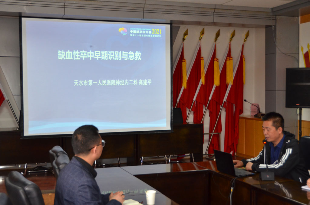 天水市腦卒中篩查和干預(yù)項(xiàng)目辦主任、市第一人民醫(yī)院醫(yī)務(wù)科科長(zhǎng)李晶文主持啟動(dòng)儀式。市腦卒中篩查和干預(yù)項(xiàng)目主管馮彩忠解讀2023年項(xiàng)目工作要求,市第一人民醫(yī)院神經(jīng)內(nèi)二科副主任醫(yī)師高建平作腦卒中早期識(shí)別與急救知識(shí)培訓(xùn),省項(xiàng)目辦工程師牛偉杰做信息采集及上傳流程培訓(xùn)。