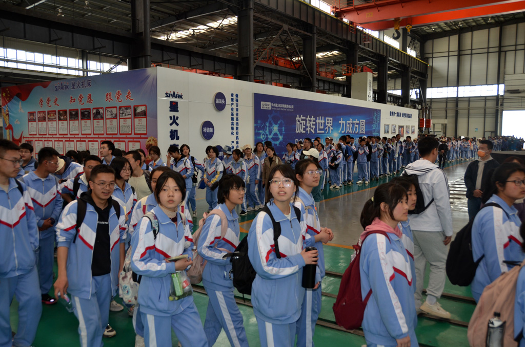 4月7日,天水一中麥積校區(qū)1000余名參加“青春勵(lì)志行——探索家鄉(xiāng)工業(yè)科技之旅研學(xué)遠(yuǎn)足拉練主題活動(dòng)”的同學(xué),在副校長王元林及各班老師帶領(lǐng)下來星火機(jī)床公司參觀。星火機(jī)床公司總經(jīng)理助理胡慶峰、黨群工作部部長蔡建欣等陪同參觀。