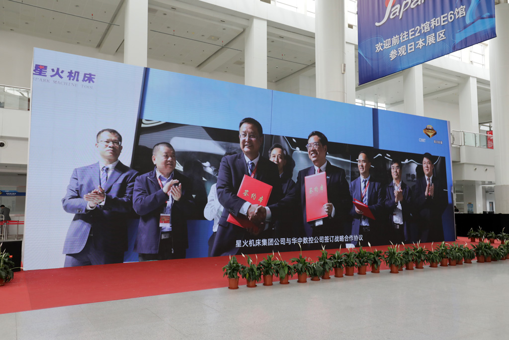 4月14日,中國(guó)機(jī)床工具行業(yè)協(xié)會(huì)主會(huì)場(chǎng)大屏及視頻號(hào)滾動(dòng)播放星火機(jī)床集團(tuán)公司展位商務(wù)洽談及簽約盛況。
