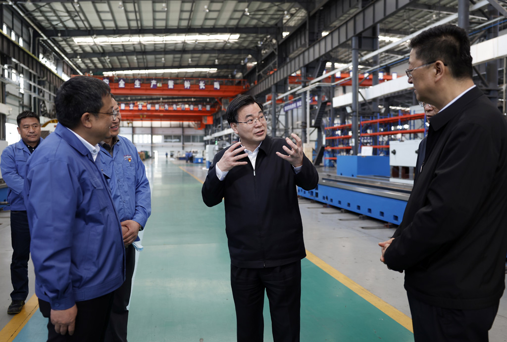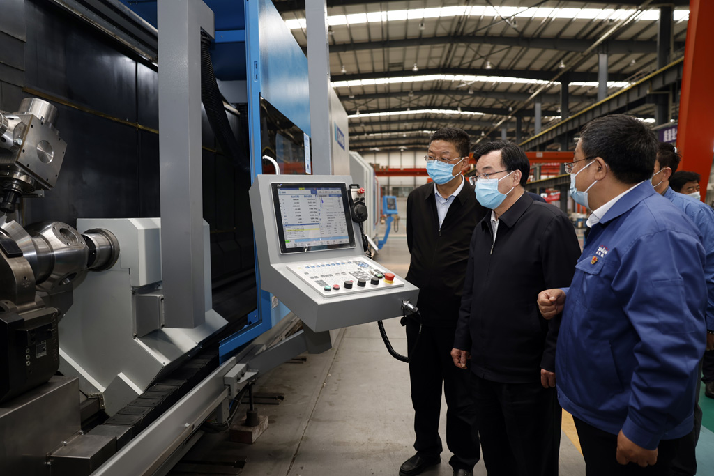 調(diào)研結(jié)束時(shí),胡書記發(fā)表了重要講話,他指出:“這個(gè)企業(yè)很有前景,體現(xiàn)在幾個(gè)方面,一是在不斷的創(chuàng)新,實(shí)現(xiàn)了專精特新,是正兒八經(jīng)的專精特新企業(yè)。沒想到天水還有這樣的企業(yè),有創(chuàng)新能力,企業(yè)發(fā)展勢(shì)頭也很好。我也看過很多機(jī)床企業(yè),你們做的很好,有自己的特點(diǎn)。你們研發(fā)的復(fù)合材料纏繞設(shè)備,制造的超長(zhǎng)、直徑超大重型機(jī)床,聯(lián)合北京郵電學(xué)院、武船等單位和自己的制造優(yōu)勢(shì)結(jié)合起來,解決了“卡脖子”問題,而且今后的需求量會(huì)很大,為國(guó)家服務(wù),國(guó)之大者要點(diǎn)贊。要發(fā)揮這些優(yōu)點(diǎn),要繼續(xù)創(chuàng)新,要善于將別人的優(yōu)勢(shì)和自身優(yōu)勢(shì)巧妙結(jié)合起來,把別人的長(zhǎng)處變成自己的長(zhǎng)處,提升企業(yè)的綜合實(shí)力?!?