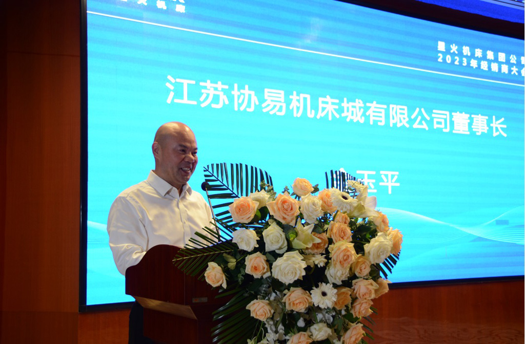 江蘇協(xié)易機床城有限公司董事長金玉平代表優(yōu)秀經(jīng)銷商致辭。他說星火機床作為發(fā)展了五十多年的“三線企業(yè)”,技術(shù)實力雄厚,品牌知名度,尤其近年來發(fā)揮自身優(yōu)勢,搶抓市場機遇,在攻克關(guān)鍵核心技術(shù)領(lǐng)域“卡脖子”難題方面取得了一定成績,拓展了一定的產(chǎn)品市場。我們對未來合作充滿信心,愿與星火同心同德,攜手并肩作戰(zhàn),實現(xiàn)合作共贏。