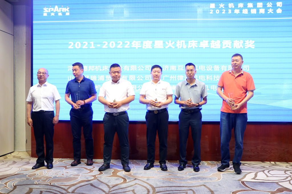本次大會對優(yōu)秀經(jīng)銷商代表進行了表彰,星火機床集團公司領(lǐng)導(dǎo)現(xiàn)場頒發(fā)了2021——2022年度星火機床卓越服務(wù)獎、開拓先鋒獎、卓越貢獻獎、最佳營銷獎等獎項。