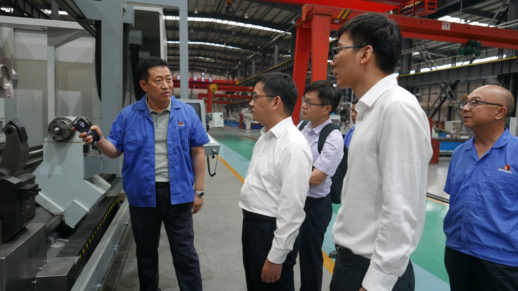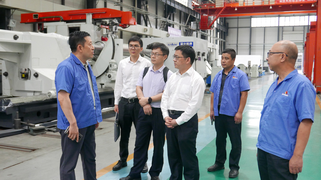 在星火公司生產(chǎn)現(xiàn)場(chǎng),劉勝向陳新文一行詳細(xì)介紹了公司發(fā)展歷程、產(chǎn)品種類(lèi)、加工能力、技術(shù)創(chuàng)新、未來(lái)發(fā)展規(guī)劃等,并陪同參觀了公司研發(fā)生產(chǎn)的各類(lèi)大、重型機(jī)床,復(fù)合材料纏繞設(shè)備等。