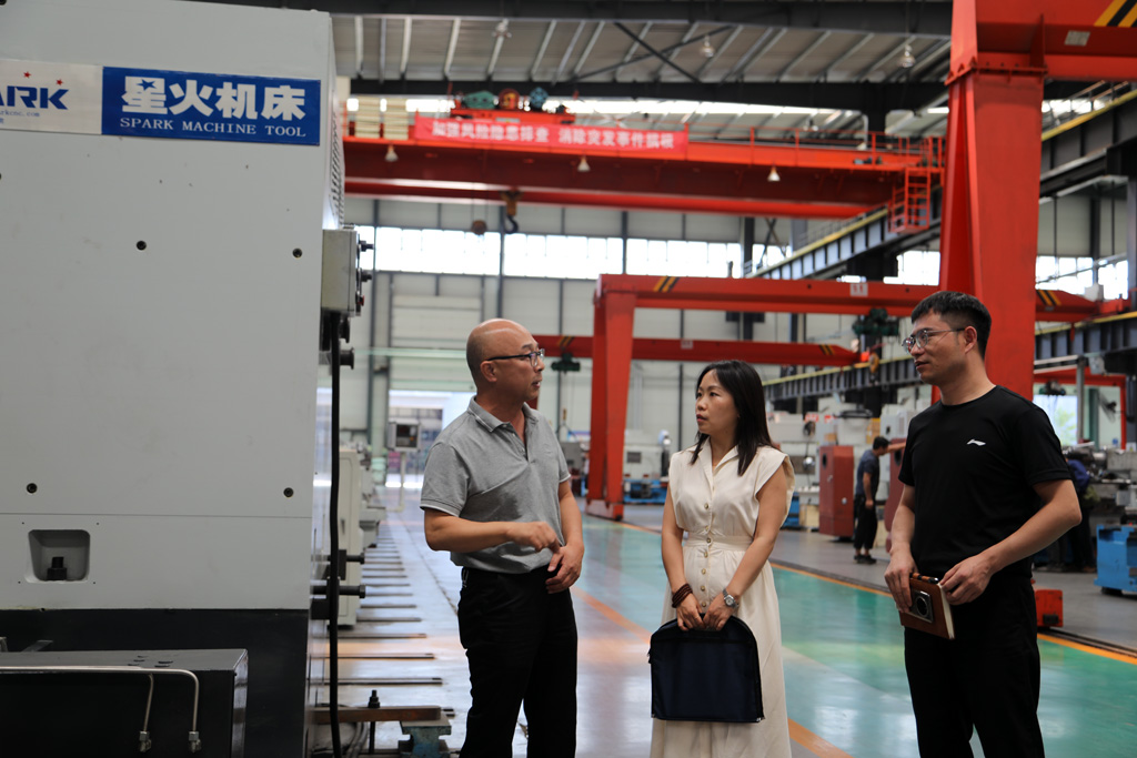 安子祎一行在蔣俊陪同下深入公司新老廠區(qū)了解企業(yè)生產(chǎn)經(jīng)營情況,蔣俊介紹了公司歷史沿革、項目建設(shè)、技術(shù)創(chuàng)新、產(chǎn)品研發(fā)等工作,還詳細(xì)介紹了公司自主研制的高端數(shù)控復(fù)合材料纏繞機床、五軸聯(lián)動車銑復(fù)合加工機床、大型數(shù)控臥式車床、專用機床等產(chǎn)品在國民經(jīng)濟重點領(lǐng)域的應(yīng)用效果,以及青重公司主要產(chǎn)品和特點。參觀結(jié)束后,雙方進(jìn)行了座談交流。