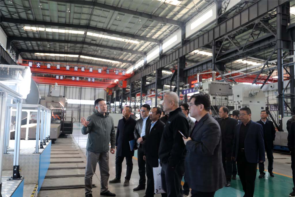 11月6日,甘肅省機(jī)械工程學(xué)會(huì)理事長(zhǎng)韓少平、秘書(shū)長(zhǎng)賈德強(qiáng)和參加“2023‘科創(chuàng)中國(guó)’裝備制造業(yè)數(shù)字化轉(zhuǎn)型與高質(zhì)量發(fā)展”論壇的相關(guān)領(lǐng)導(dǎo)專家學(xué)者二十余人來(lái)星火機(jī)床公司調(diào)研,星火機(jī)床集團(tuán)公司黨委副書(shū)記、總經(jīng)理劉勝,黨委副書(shū)記、副總經(jīng)理蔣俊陪同接待。調(diào)研組詳細(xì)了解了公司自我研制的五軸聯(lián)動(dòng)車(chē)銑復(fù)合加工機(jī)床、大型數(shù)控臥式車(chē)床、重型機(jī)床、車(chē)輪車(chē)和專用機(jī)床等高精尖產(chǎn)品的科技創(chuàng)新、應(yīng)用前景及應(yīng)用領(lǐng)域等情況之后,調(diào)研組對(duì)星火機(jī)床公司在技術(shù)創(chuàng)新、市場(chǎng)開(kāi)拓所作的工作表示肯定。