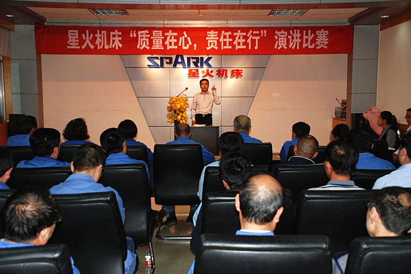 為扎實有效推進企業(yè)質(zhì)量文化建設(shè),提高企業(yè)凝聚力、向心力,提高領(lǐng)導(dǎo)干部和全體員工質(zhì)量意識,在2018全國 “質(zhì)量月”活動中,星火機床公司為認真貫徹落實“加強市場監(jiān)管,建設(shè)質(zhì)量強國”主題,組織開展了“質(zhì)量在心、責(zé)任在行”領(lǐng)導(dǎo)干部演講比賽,經(jīng)過預(yù)賽、決賽較量,于9月14日晚上圓滿落幕。