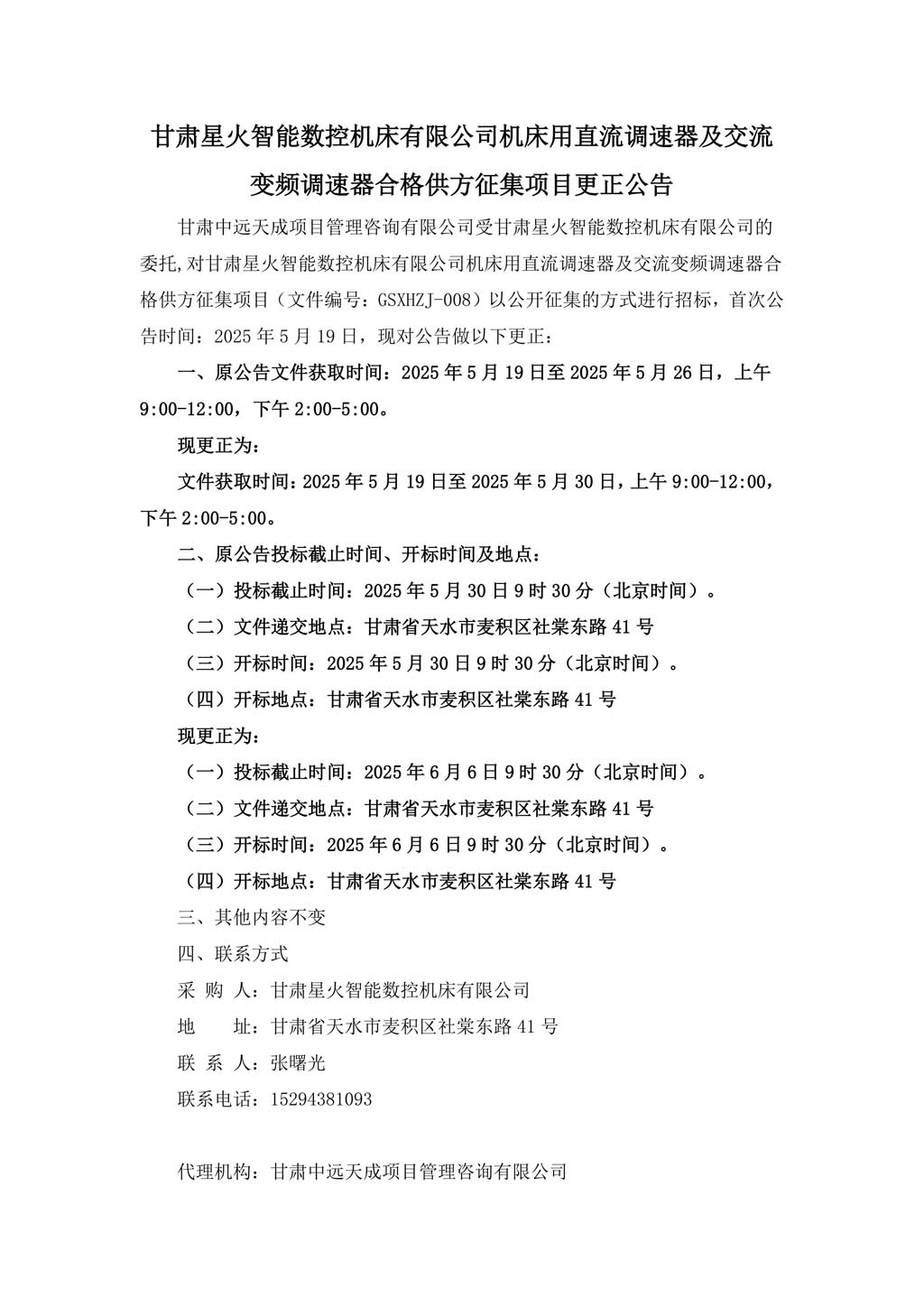 甘肅星火智能數(shù)控機(jī)床有限公司機(jī)床用直流調(diào)速器及交流變頻調(diào)速器合格供方征集項(xiàng)目更正公告
