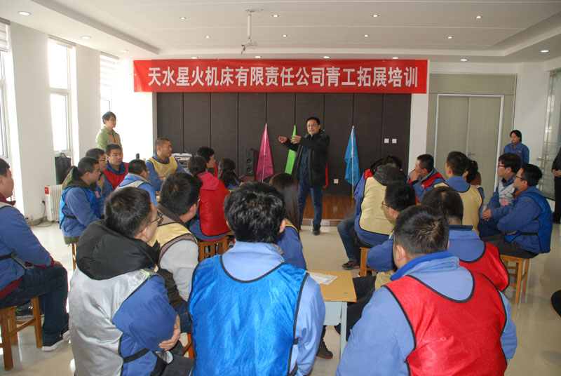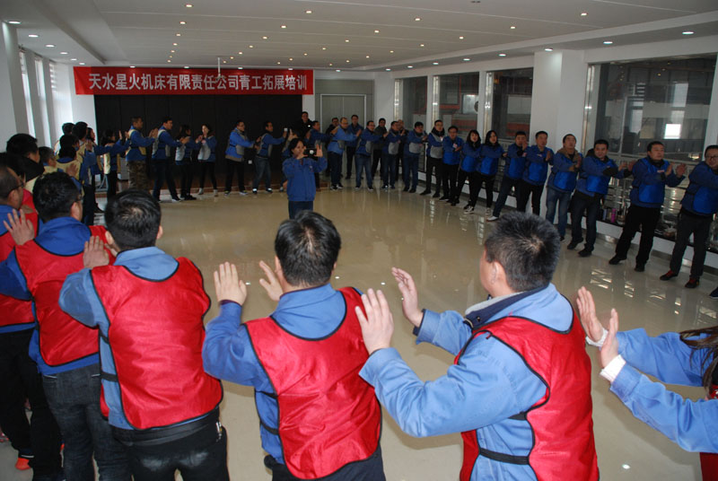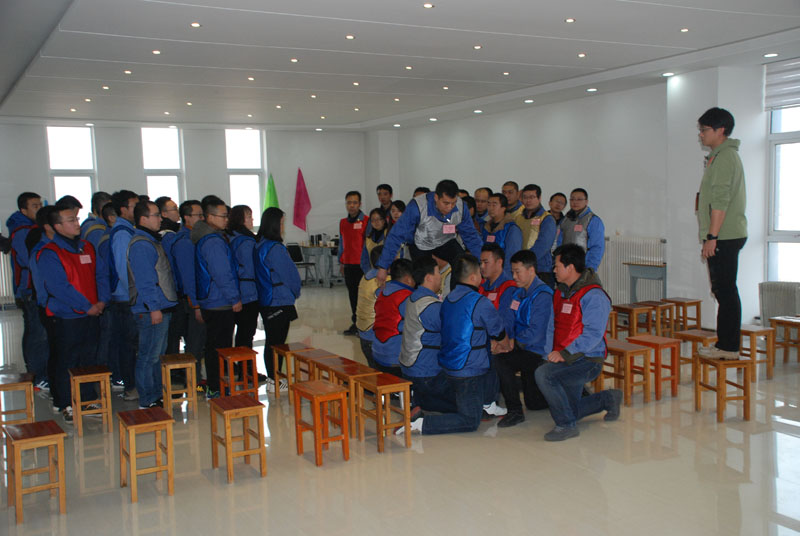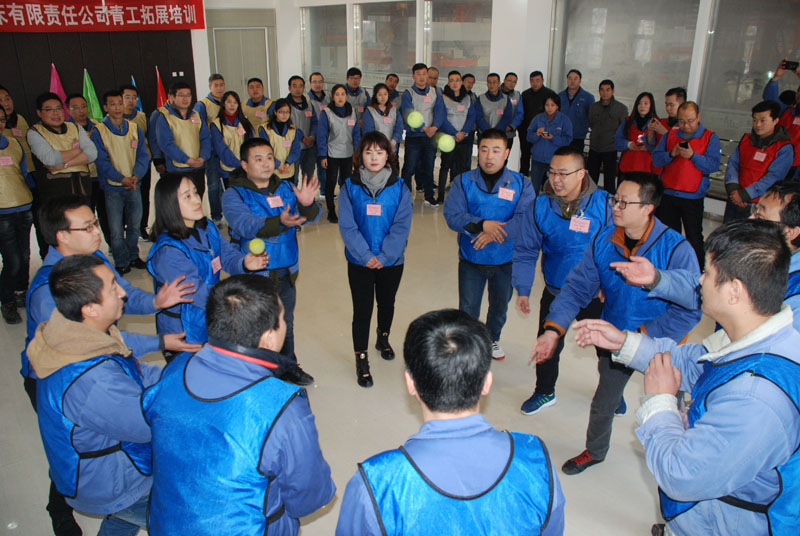 1月12日,銷售部會(huì)議室人聲鼎沸,從早上8點(diǎn)到晚上6點(diǎn)20分,一會(huì)兒響起高昂有力的口號(hào)聲,一會(huì)兒響起整齊響亮的吶喊聲。公司邀請(qǐng)的蘭州毅智拓展訓(xùn)練營(yíng)的兩位老師正在對(duì)公司50名青工進(jìn)行拓展訓(xùn)練。集團(tuán)公司黨委書記、董事長(zhǎng)蔣保權(quán),黨委副書記、副總經(jīng)理、工會(huì)主席蔣俊放棄休息,前來(lái)觀看訓(xùn)練。公司總工程師劉強(qiáng),鑄木分廠廠長(zhǎng)張巨宏作為觀察員也早早來(lái)到現(xiàn)場(chǎng),進(jìn)入工作狀態(tài)。工會(huì)副主席蔡建欣集合隊(duì)員點(diǎn)名之后,交給培訓(xùn)老師阿杜和海濤帶領(lǐng),開(kāi)始了緊張有序的訓(xùn)練。